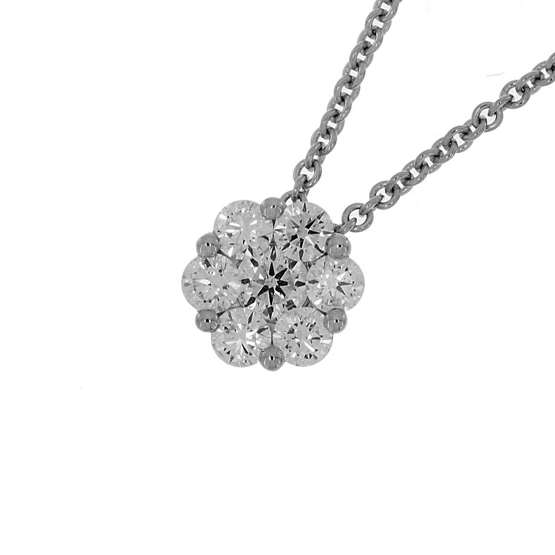 necklace 18 kt WG, 6 diamonds 0,35 ct, G-si, 1 diamond 0,09 ct, G-si, l:42,0 cm
