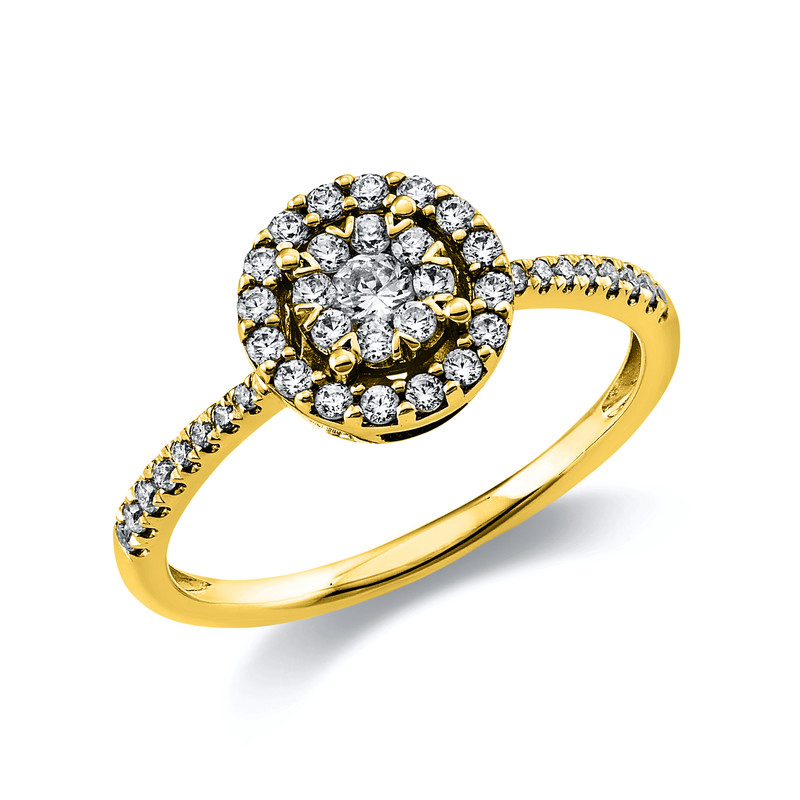 ring 14 kt YG, 1 diamond 0,08 ct, G-si, 40 diamonds 0,31 ct, G-si, Ø:8,0 mm, width:54